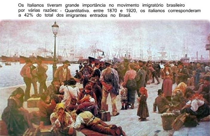 (1870 e 1920), eles começaram a migrar para a América, principalmente para os Estados Unidos, Argentina e Brasil. A crise vivida pela Itália e a idéia de que o Novo Mundo poderia oferecer uma vida melhor, motivaram muitos cidadãos a migrarem. Do início do século XIX até a década de 30, dez milhões de italianos deixaram o país.
